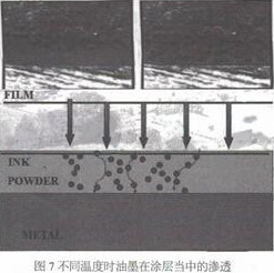 When the transfer temperature is 160℃, the penetration depth of the ink is only 19μ. When the transfer temperature is 180℃, the penetration depth of the ink is 53μ; while when the transfer temperature is 200℃, the penetration depth of the ink reaches 107μ